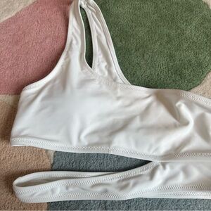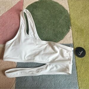 Lulus Medium NWT Sun and Games White One-Shoulder Cutout Bikini Top