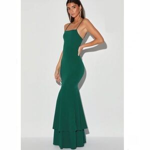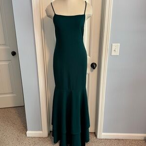 Lulu’s Medium Tier and There Hunter Green Tiered Trumpet Hem Maxi Dress ~Holiday