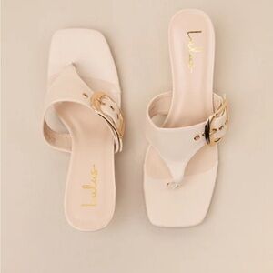 Lulus Meline Bone Thong Buckle Slide Sandals White Size 10