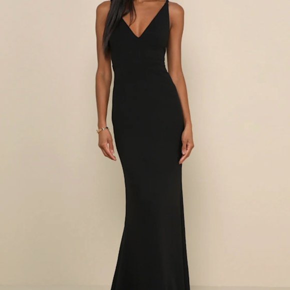 Stretchy crepe knit lends a modern touch to this timeless dress with a V-neckline and matching back, supported by sleek tapered straps. The mesmerizing mermaid silhouett