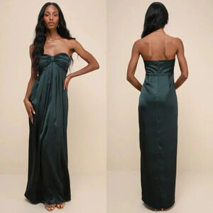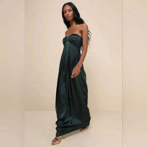 Lulu's Memorable Entrance Emerald Green Strapless Satin Maxi Dress S Wedding NWOT. See all pictures for details.