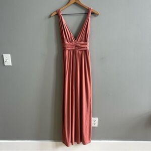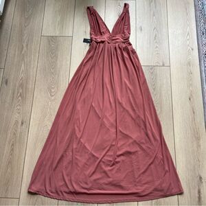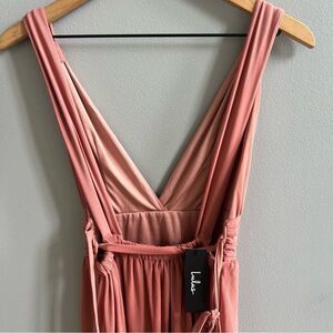 Lulu’s Mesmerized by Love Rusty Rose Mesh Lace-Up Maxi Dress NWT XS