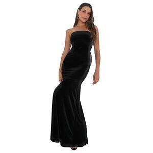 Lulus Mesmerizing Elegance Black Velvet Strapless Backless Maxi Dress Size L