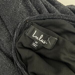 Lulus Metallic Black Fit & Flare Mini Skater Dress with Strappy Back Size M