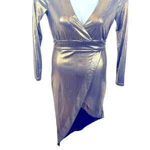 Lulu’s Metallic Gold Party Dress Small Semi Sheer Faux Wrap Night Out