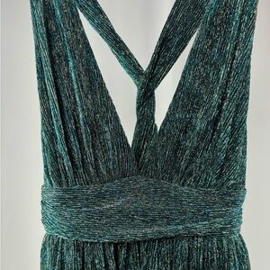 Lulus Metallic Stripe Twist Back Cocktail Dress in Green Size Medium
