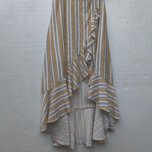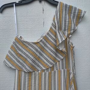 Lulus Midi Dress High Tide One Shoulder Yellow White Striped Women's Size Small