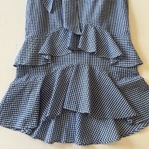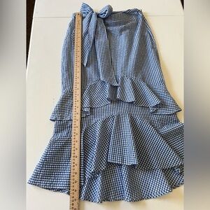 Lulus Midi blue plaid skirt with ruffles and tie waist S NWOT