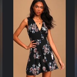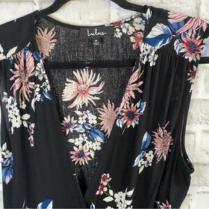 The Lulus Midnight Flower Black Floral Print Wrap Dress