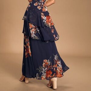 Lulus Midnight Mood Navy Blue Floral Print Tiered Maxi Dress Size Small NEW
