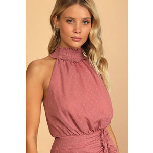 Lulus Mini Dress Large Marsala Pink Halter Ruched Sleeveless Place and Time