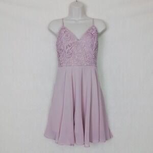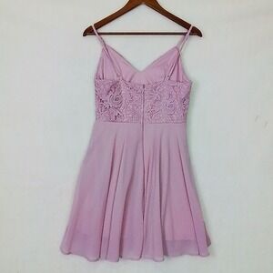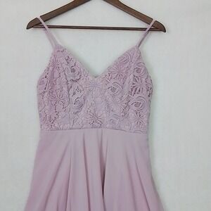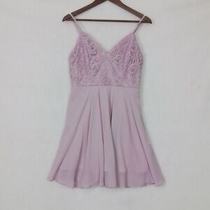 Lulus Mini Dress Pink Sz M Lace Sleeveless Straps Chiffon Prom Special Occasion