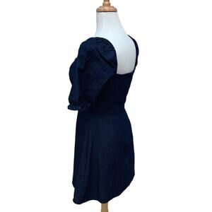 Lulu’s Mini Dress Size M Navy Blue Square Neck Polka Dots Y2K Puff Sleeve Casual