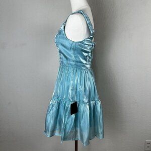 Lulu's Mini Dress Thriving Darling Shiny Tiered Teal Blue Party Size XS