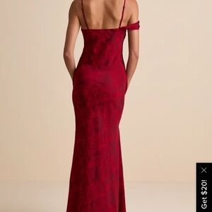 Lulus Minnie Red Satin Jacquard Asymmetrical Maxi Dress - Size S