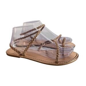 Lulus Mirela Rose Gold Flat Sandals Braided Straps Womens Size 8 #477762 Boho
