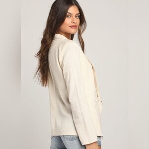Lulus Miss Punctuality Beige Lightweight Linen Blend Blazer Size Small