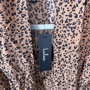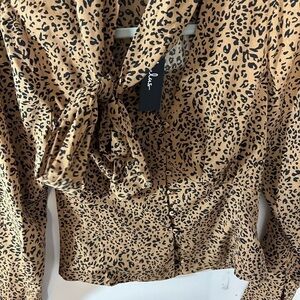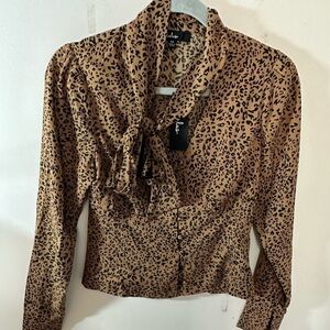 Lulus Modern Animal Tan and Black Leopard Print Button-Up Top NWT size XS