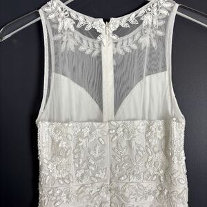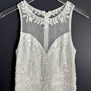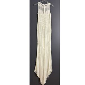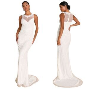Lulus Modern Fairytale White Mesh Beaded Sequin Mermaid Maxi Dress Size Small