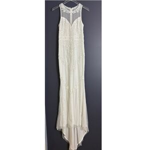 Lulus Modern Fairytale White Mesh Beaded Sequin Mermaid Maxi Dress Small NEW