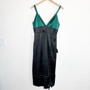 Lulus Modern Moments Green and Black Color Block Satin Midi Dress