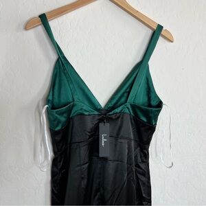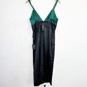 Lulus Modern Moments Green and Black Color Block Satin Midi Dress
