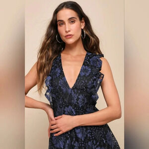 Lulu's Molinetto Navy Blue Lace Ruffled Tiered Sleeveless Maxi Dress Party. New without tags. See all pictures for details.