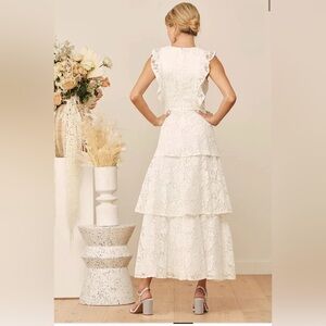 Lulus Molinetto White Lace Ruffled Tiered Sleeveless Maxi Dress size S