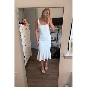 Lulus Moment Maker White Square Neck Trumpet Midi Dress Size Medium NWT Bridal