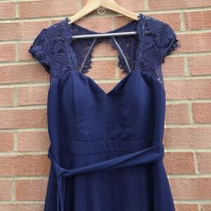 Lulu's Momentous Moments Navy Blue Lace Backless Maxi Dress Large