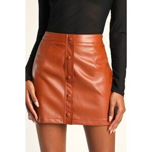 Lulu's Most Fab Brown Vegan Leather Button-Front Mini Skirt L NWT