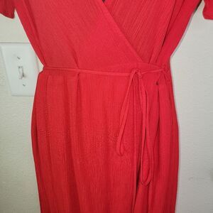 Excellent pre-owned condition. No flaws to note. Women's Lulus Much Obliged Red Wrap Maxi Dress Size Small.