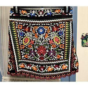 Lulus Multicolor Boho Don’t Stop The Party Embroidered Black Mini Skirt Sz XS