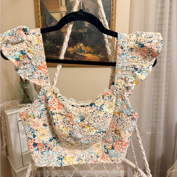 Chic floral crop top with ruffle sleeves. Brighten your style effortlessly.