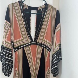 Elevate your style with this Lulu's women's top featuring a striking geometric pattern. The multicolor design includes shades of pink, green, and black, perfect for making a bold statement. Ideal for any occasion, this top combines comfort with a chic look.
