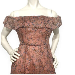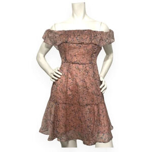 Lulus My Favorite Rusty Rose Floral Print Off-the-Shoulder Mini Dress Size M