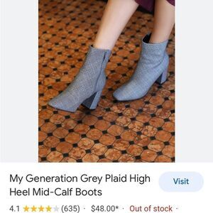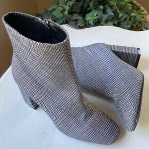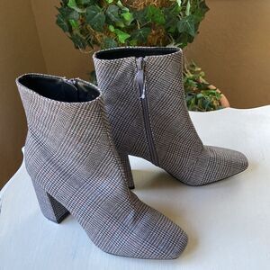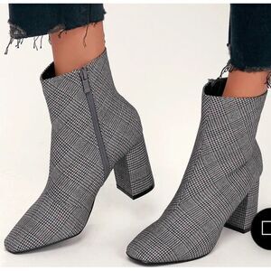 Lulus My Generation Grey Plaid High Heel Ankle Booties Size 7