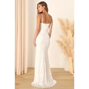Say "I Do" to your greatest love story in the Lulus My Kind of Forever White Mesh Floral Embroidered Maxi Dress! A sheer mesh overlay, embellished with an stunning lace-like floral embroidery throughout, shapes this gorgeous dress that falls from slender spaghetti straps into a straight neckline and a princess-seamed bodice. High, fitted waist sits atop a flattering mermaid maxi skirt with a romantic, sheer train at back. Hidden back zipper/clasp.