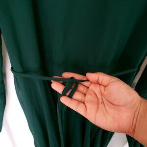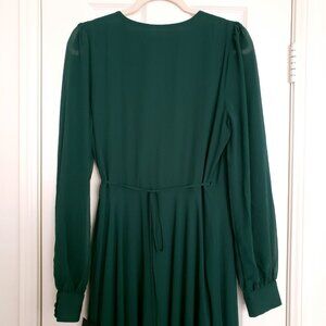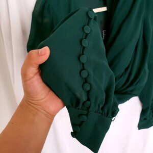 Lulus My Whole Heart Emerald Green Long Sleeve Wrap Dress Formal Party Size L