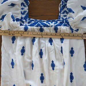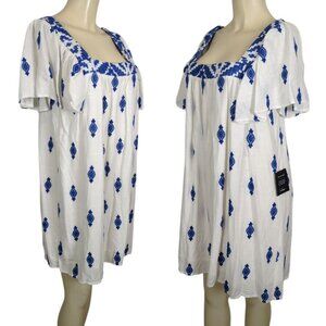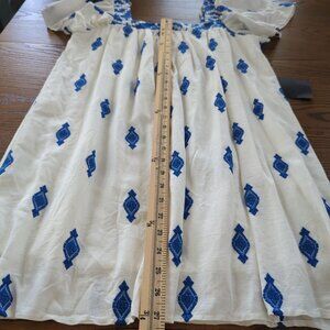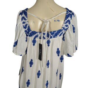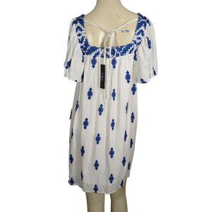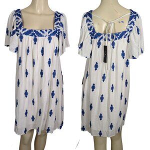Lulus Mykonos Moment white blue Embroidered linen shift mini dress size M