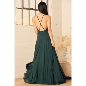 Lulus Mythical Kind of Love Dress Womens Size Large Maxi Dark Green Chiffon Crisscross Back. New with Tag.