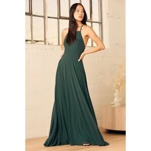 Lulus Mythical Kind of Love Dress Womens Size Large Maxi Dark Green Chiffon NWT