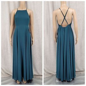 Lulus Mythical Kind of Love Teal Maxi Dress Criss-cross Straps Open Back Women's