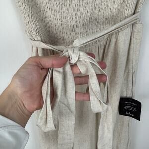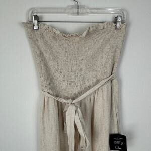 Lulu's NEW Effective Charm Beige Linen Strapless Jumpsuit Large Boho neutrals