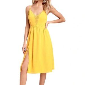 Lulus "NEW" Melena Mustard Yellow Lace Backless Side Slit Midi Dress Size L