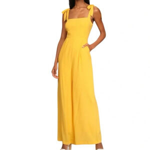 Lulus Sunny Sweetness Yellow Tie-Strap Crepe Woven Wide Leg Jumpsuit