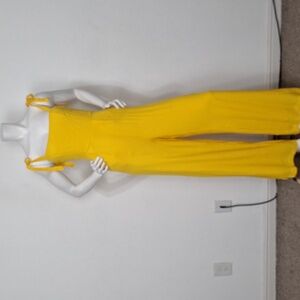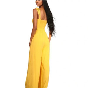 Lulus NEW Sunny Sweetness Yellow Coquette Crepe Woven Wide Leg Jumpsuit Size S