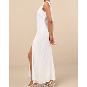 Lulus NWOT Yaneli White Boat Neck Cowl Back Sleeveless Fitted A-Line Maxi Dress
