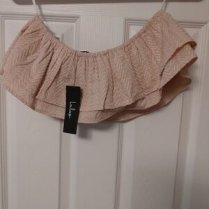 Lulu's NWT Abryelle Blush Pink Embroidered Tiered Ruffle Strapless Crop Top S