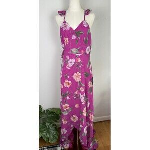 Lulus NWT All Mine Magenta Floral Print High-Low Wrap Dress XS beach Boho Event